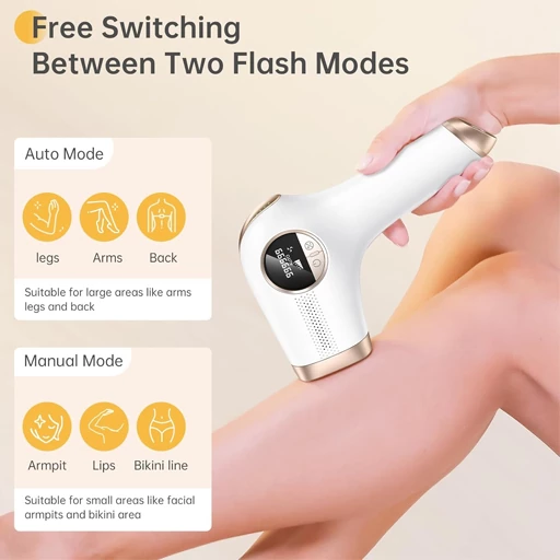 نور فلاش فقط زمانی فعال می شود که دستگاه لیزر موهای زائد در تماس 90 درجه با پوست باشد و چراغ سبز سنسور هوشمند روشن باشد