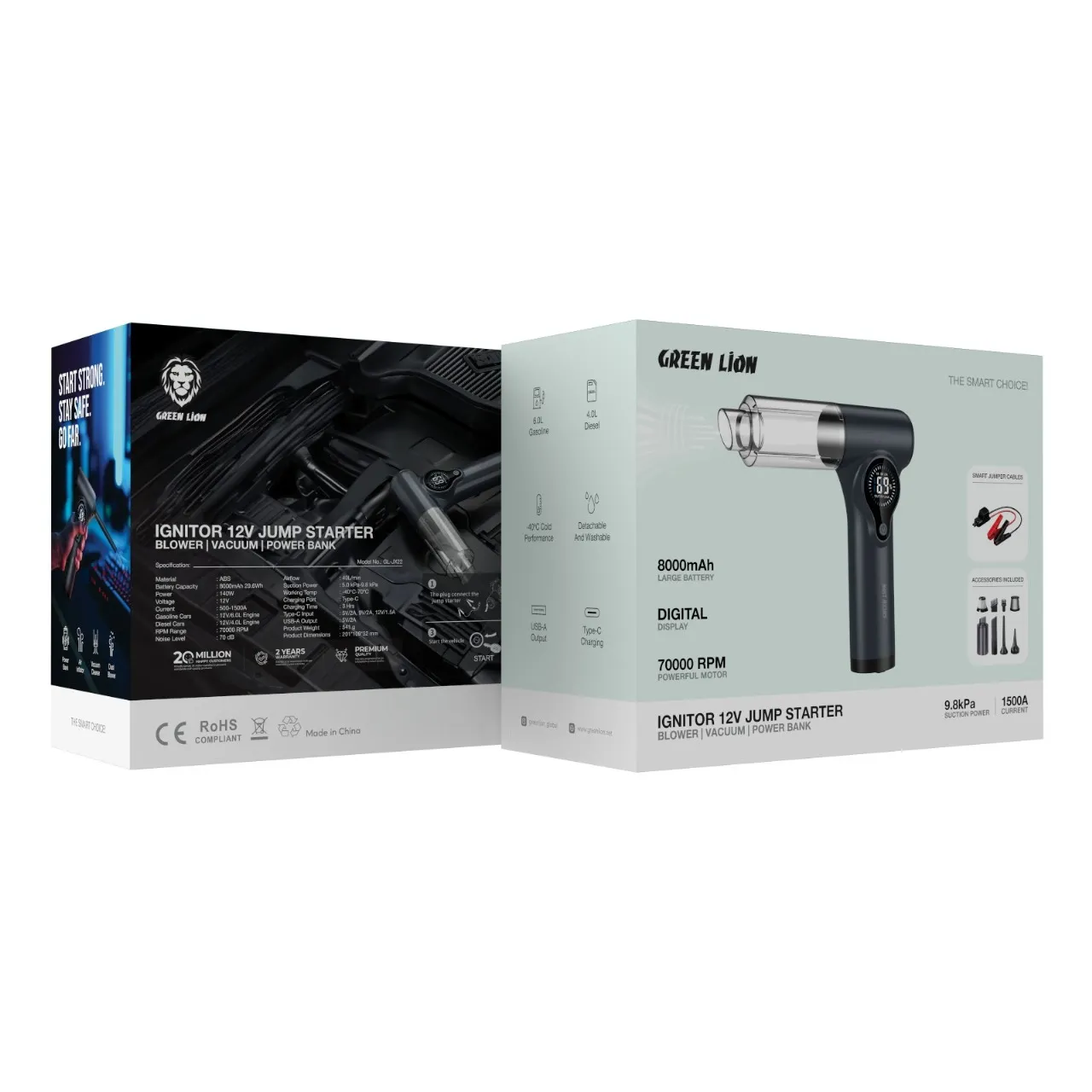 دستگاه Green Lion Ignitor 12V یک گجت چندمنظورهی حرفهای از برند معتبر گرین لاین است که چهار عملکرد کاربردی را در یک بدنه جمع کرده است: جامپ استارتر خودرو، جت فن دمنده، جارو شارژی و پاوربانک.این دستگاه با باتری قدرتمند ۱۲ ولتی، قابلیت روشن کردن خودرو در مواقع اضطراری را دارد و میتواند موتورهای بنزینی و دیزلی سبک را به راحتی استارت بزند. همچنین با بهرهگیری از طراحی دوکاره، به عنوان جت فن برای باد کردن لاستیک، تمیز کردن فضاهای سختدسترس و جارو شارژی برای جمعآوری گرد و غبار داخل خودرو نیز مورد استفاده قرار میگیرد.به علاوه، پاوربانک داخلی آن امکان شارژ موبایل، تبلت و سایر دستگاهها را از طریق پورت USB فراهم میکند. این محصول با طراحی جمعوجور، دستهی ارگونومیک و توان بالا، ابزاری ضروری برای خودرو و سفرهای جادهای محسوب میشود.