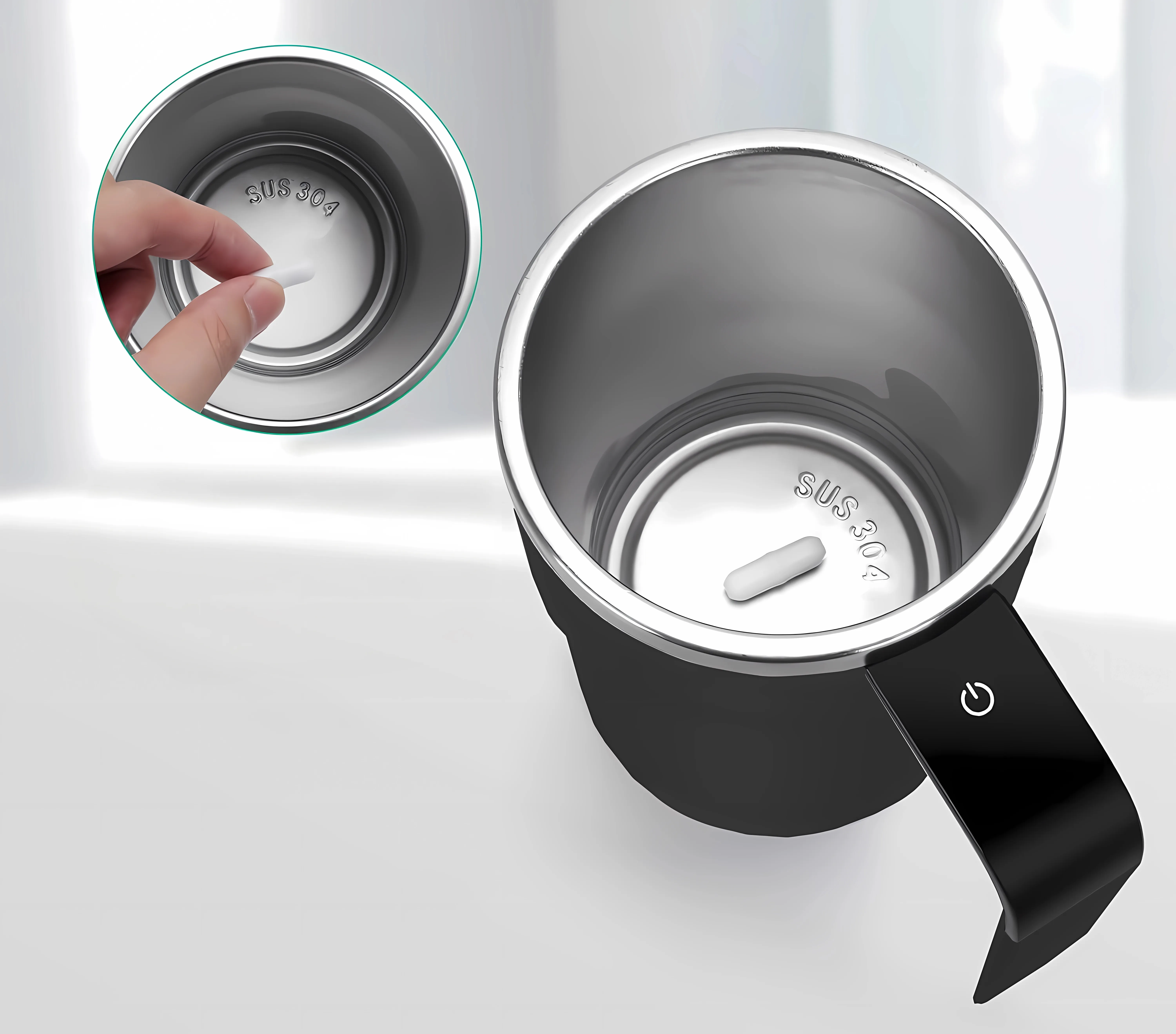 درپوش ضدنشت و طراحی ارگونومیک دسته، امکان استفاده راحت در هر موقعیتی را فراهم میکند. منبع تغذیه این ماگ باتری است، که بهراحتی از زیر پایه قابل تعویض میباشد.