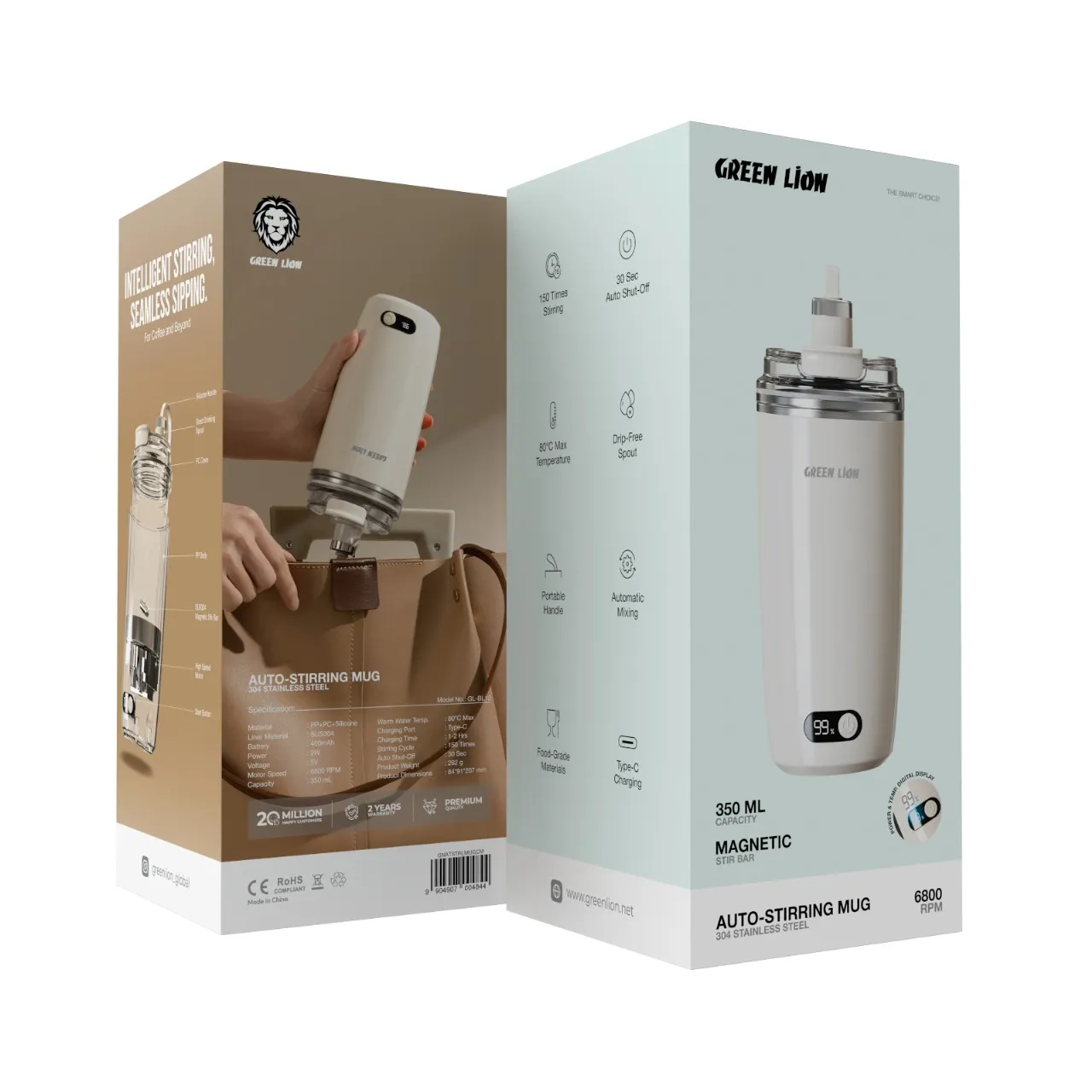 ماگ همزن خودکار گرین لیون ۳۵۰ میلیلیتری، خلاقیت و کاربردی بودن را برای نوشیدنیهای روزمره شما به تصویر میکشد. این ماگ ترکیبی شگفتانگیز از مواد PP، PC و سیلیکون است که با آستر فولادی SUS304 مخصوص مواد غذایی، جلوهای جاودانه به آن میبخشد. این ماگ با باتری ۴۰۰ میلیآمپرساعتی، با توان ۲ وات کار میکند و سرعت موتور آن ۶۸۰۰ دور در دقیقه است که میتواند تا ۱۵۰ بار به صورت خودکار هم بزند. دمای داخلی آن میتواند آب گرم را تا ۸۰ درجه سانتیگراد حفظ کند که برای نگهداری نوشیدنیها در دمای ایدهآل ایدهآل است. این ماگ دارای دهانهای است که به ریختن بدون چکه کمک میکند و یک قفل قابل استفاده مجدد در دست برای راحتی بیشتر دارد. شارژ از طریق پورت Type-C تنها ۱-۲ ساعت عمر باتری دارد. به عنوان یک ویژگی ایمنی، پس از ۳۰ ثانیه عدم فعالیت به طور خودکار خاموش میشود. این ماگ چای، قهوه یا هر چیز دیگری را به راحتی هم میزند. ماگ همزن خودکار گرین لیون، یک قطعه طراحی فوقالعاده شیک و بسیار جمع و جور است.