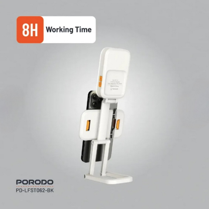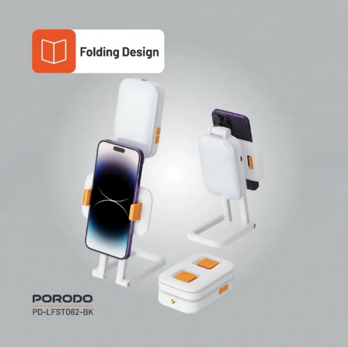 عکس برداری یا فیلم برداری باکیفیت قطعا نیازمند نور مناسبه. استند پرنور پرودو یه گزینه سبک ، تاشو و همیشه همراه بسیار با کیفیته که در هر فضایی نور مورد نیاز برای گرفتن بهترین و باکیفیت ترین عکسها رو براتون فراهم میکنهچراغ های RGB پر نور ، طراحی تاشو که به عنوان استند نگهدارنده موبایل بصورت عمودی و افقی میتونه استفاده بشه ، سبک و قابل حمل بودنش اونو به یه گزینه عالی تبدیل کردهمنبع نوری این LED از ۶۰ عدد نور زرد و سفید و ۲۲ عدد RGB تشکیل شده که توانایی تنظیم رو از دمای 2500K تا دمای رنگ خنک 6000K رو براتون فراهم کنه ، این قابلیت باعث میشه تا نور برای هر مکانی با هر نوع نوری مناسب باشهباتری ۱۰۰۰ میلی آمپر ساعت اون تا ۸ ساعت توانایی نگهداری شارژ داره و در عرض ۸۰ دقیقه از طریق پورت تایپ سی مجدد شارژ کامل میشهاین رینگ لایت پر نور ۲ وات قدرت داره و تا ۳ متر رو پوشش روشنایی میده