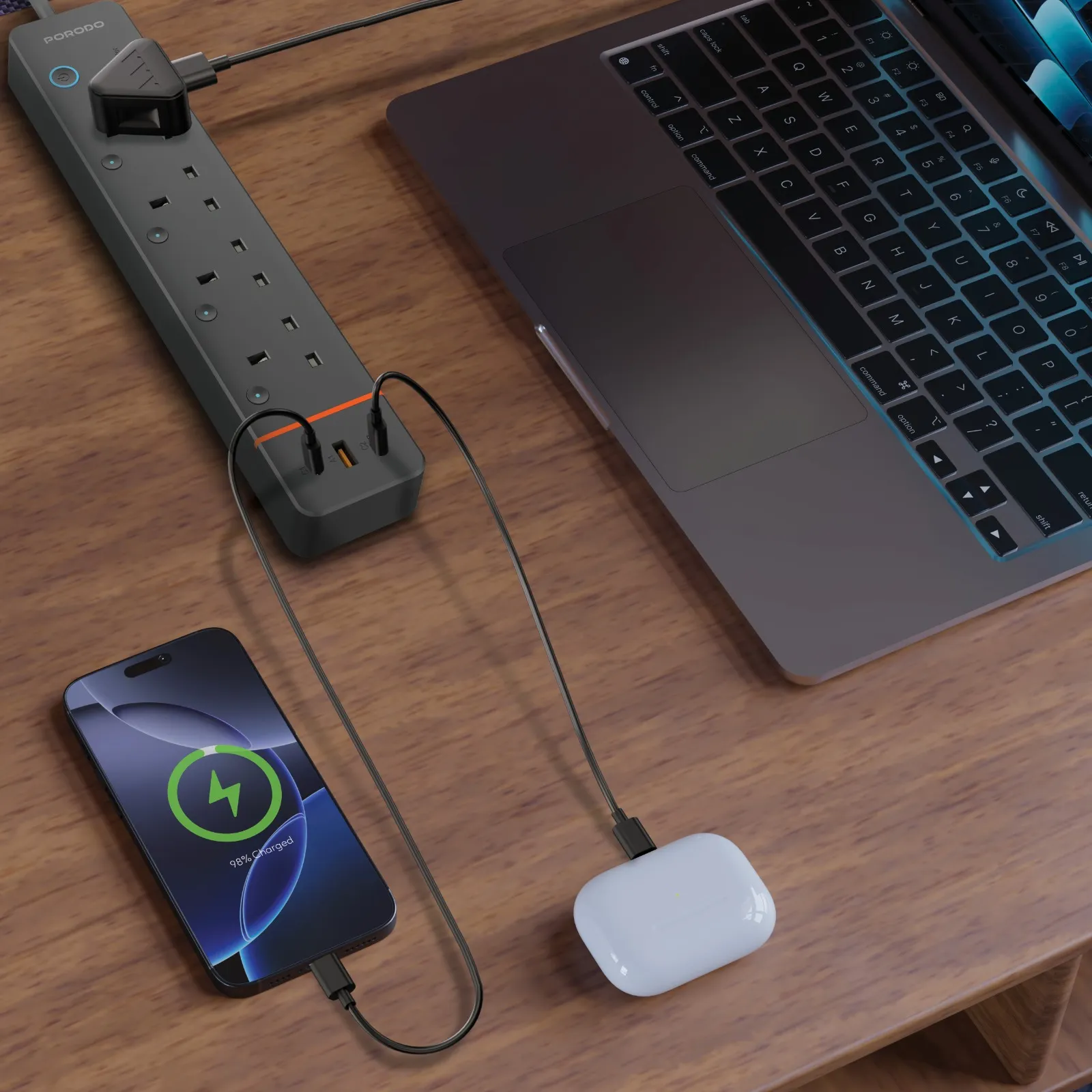 چندراهی برق هوشمند Porodo Chargelink با ۴ پورت AC و USB-C مدل PDPSUA1BK