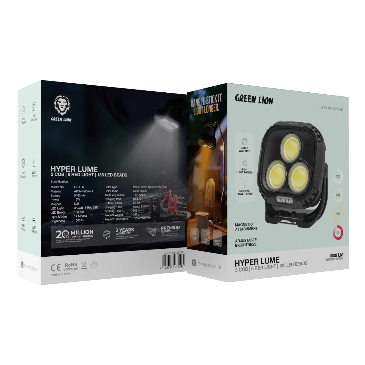 چراغ کمپینگ و کار 1000 لومن گرین لاین مدل Green Lion Hyper Lume