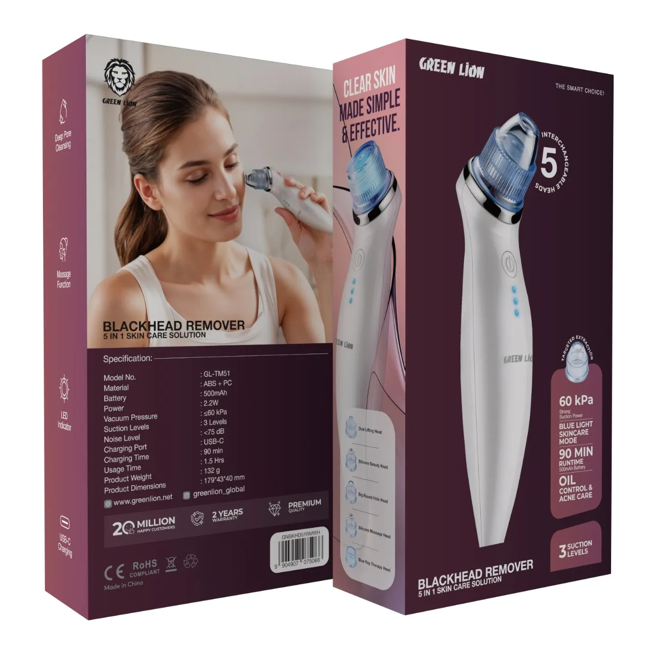 دستگاه پاک کننده جوش سرسیاه ۵ کاره گرین Green Lion BlackHead Remover with 5-in-1 Skin Care Solution