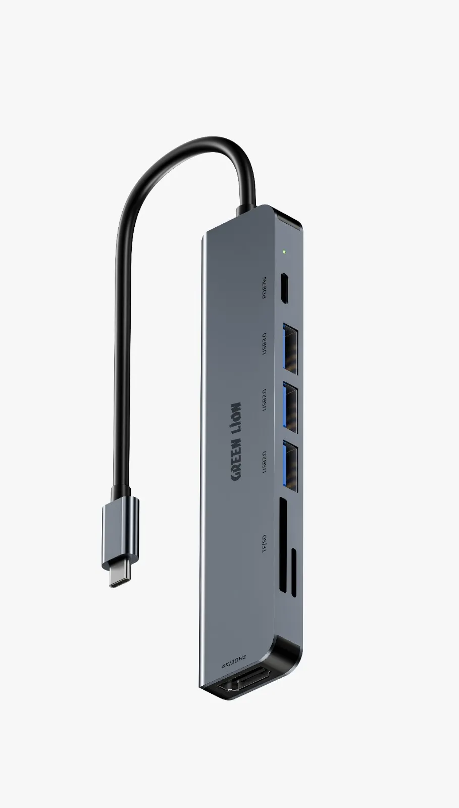 هاب گرینلاین مدل GHB-9 برای کاربران حرفهای، طراحان، عکاسان و افرادی که با چند دستگاه بهصورت همزمان کار میکنند، انتخابی ایدهآل است. با Green Lion 7 in 1 Hub، تنها با یک پورت USB-C میتوانید به دنیایی از اتصالات دسترسی داشته باشید.