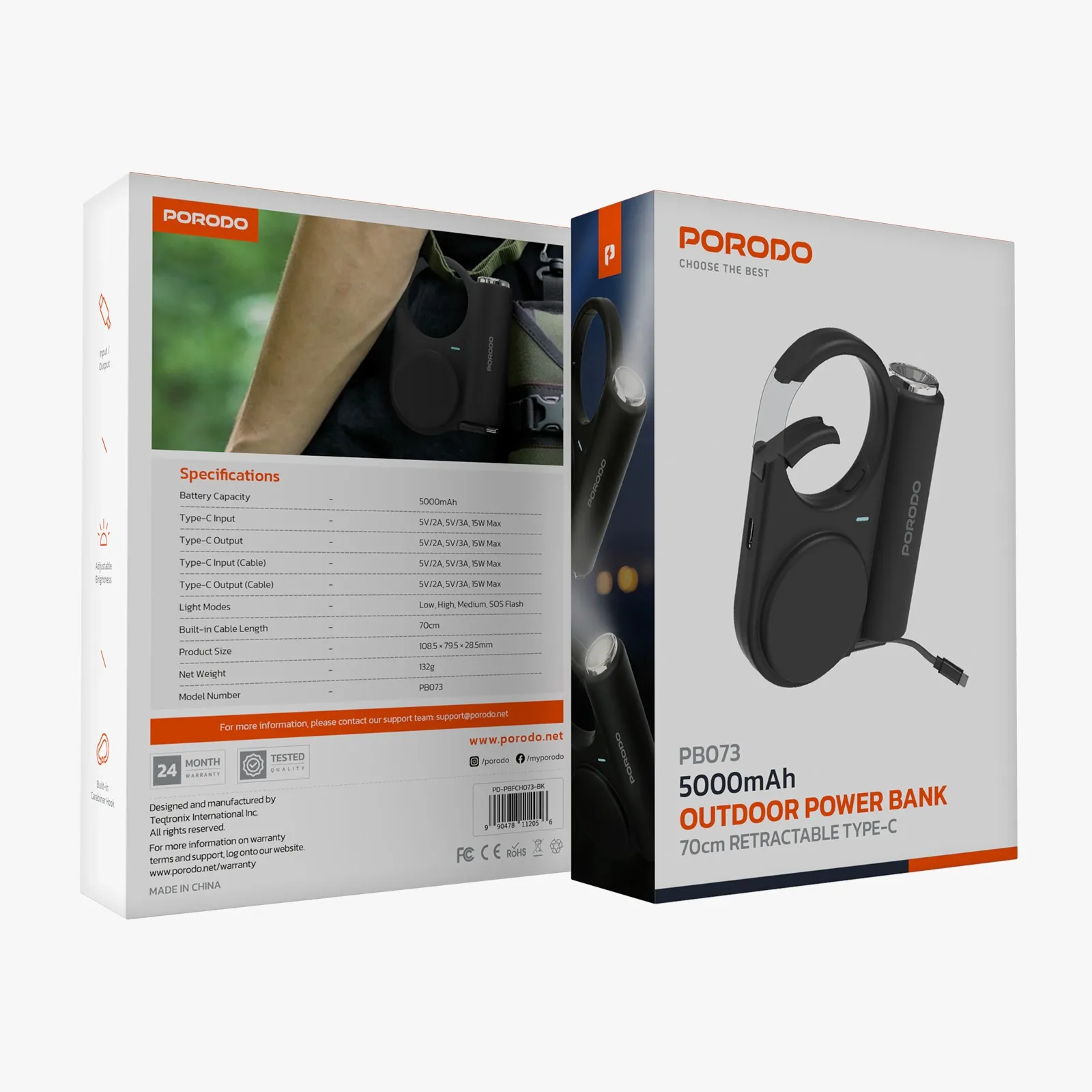 پاور بانک 5000 میلی آمپری پورودو در فضای باز یک شارژر کوچک و مفید است که برای ماجراجویی در فضای باز طراحی شده است. با باتری 5000 میلی آمپر ساعتی، دستگاه های شما را در هنگام حرکت روشن نگه می دارد. دارای ورودی و خروجی Type-C با قابلیت شارژ تا 15 وات است که امکان شارژ سریع تلفن، تبلت یا سایر دستگاههای شما را فراهم میکند. برای راحتی ساخته شده است، با یک کابل داخلی 70 سانتی متری همراه است، بنابراین نیازی به حمل سیم بیشتری ندارید. قلاب کارابین محکم به شما امکان می دهد آن را برای دسترسی آسان به کوله پشتی خود وصل کنید. همچنین دارای یک چراغ LED روشن با حالت های قابل تنظیم (کم، متوسط، زیاد و فلاش SOS) است که آن را برای کمپینگ، پیاده روی یا مواقع اضطراری عالی می کند. پاور بانک 5000 میلی آمپری پورودو در فضای باز هم بادوام و هم سبک است. این به عنوان یک منبع برق و چراغ قوه قابل اعتماد عمل می کند، بنابراین شما برای هر سفری آماده هستید.