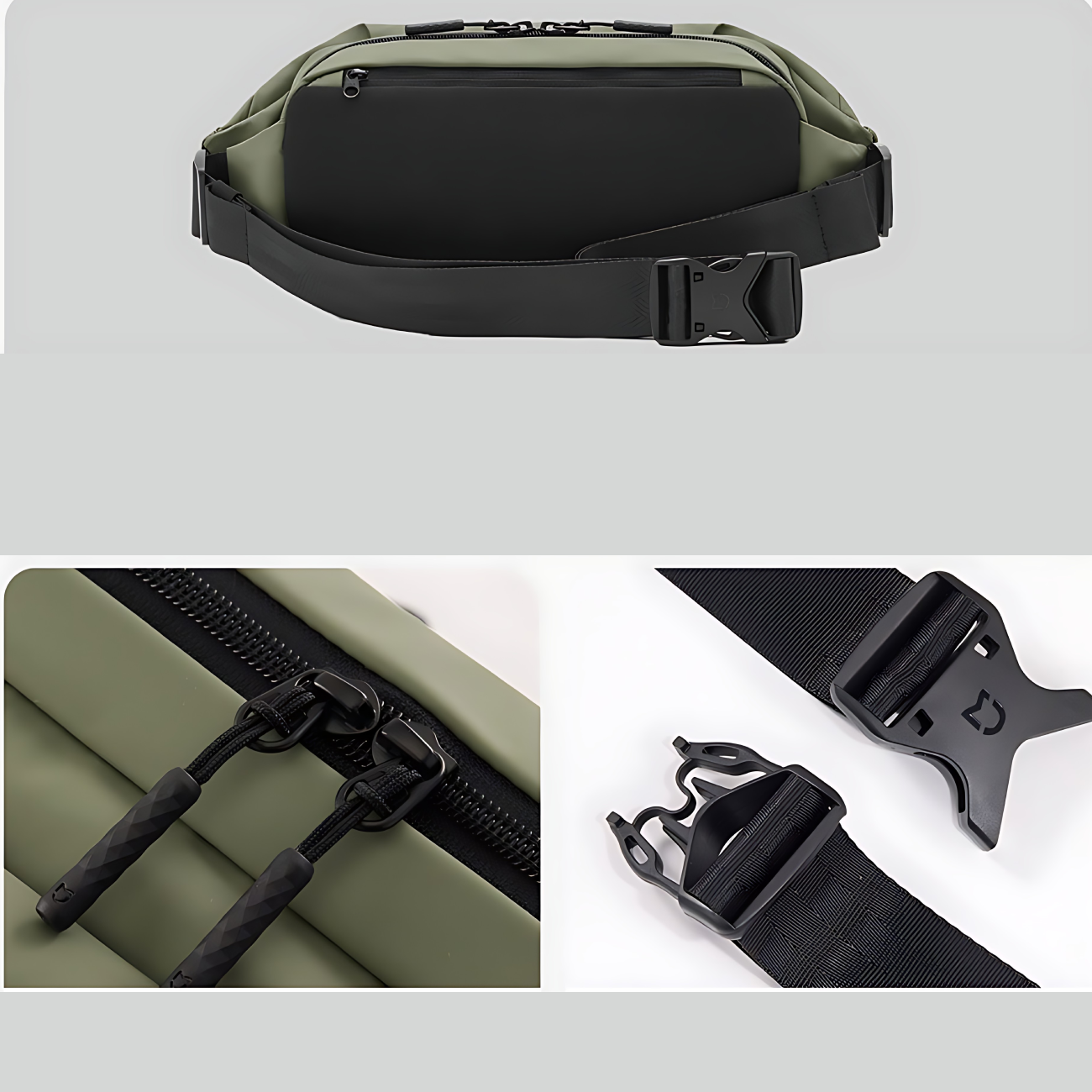 یکی از مزیتهای کاربردی این کیف اسپرت شیائومی، قابلیت حمل در دو حالت متفاوت است. شما میتوانید آن را روی سینه حمل کنید تا در هنگام حرکت مانند دوچرخهسواری یا پیادهروی بهسرعت به وسایل موردنیازتان دسترسی داشته باشید. در حالت دوم، میتوانید کیف را مانند کولهای کوچک روی پشت قرار دهید. این روش برای زمانی که وسایل بیشتری همراه دارید یا میخواهید فشار وارده به شانهها را تقسیم کنید، بسیار مناسب است.