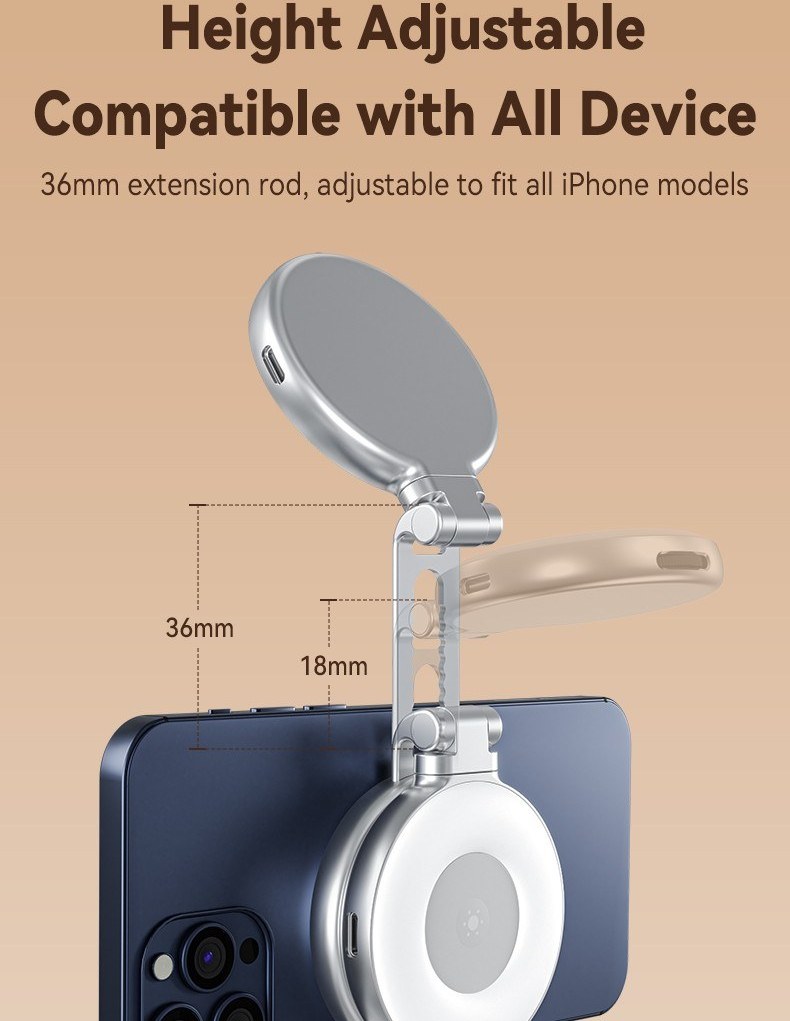 با Telesin S5-BGD-1 C03، نورپردازی حرفهای و آسان را در هر زمان و مکان تجربه کنید. این چراغ حلقهای سلفی با طراحی مغناطیسی و سبک، امکان اتصال سریع به گوشی، پایه، لپتاپ یا هر سطح فلزی را فراهم میکند و تجربهای بیدردسر و انعطافپذیر از نوردهی حرفهای ارائه میدهد.