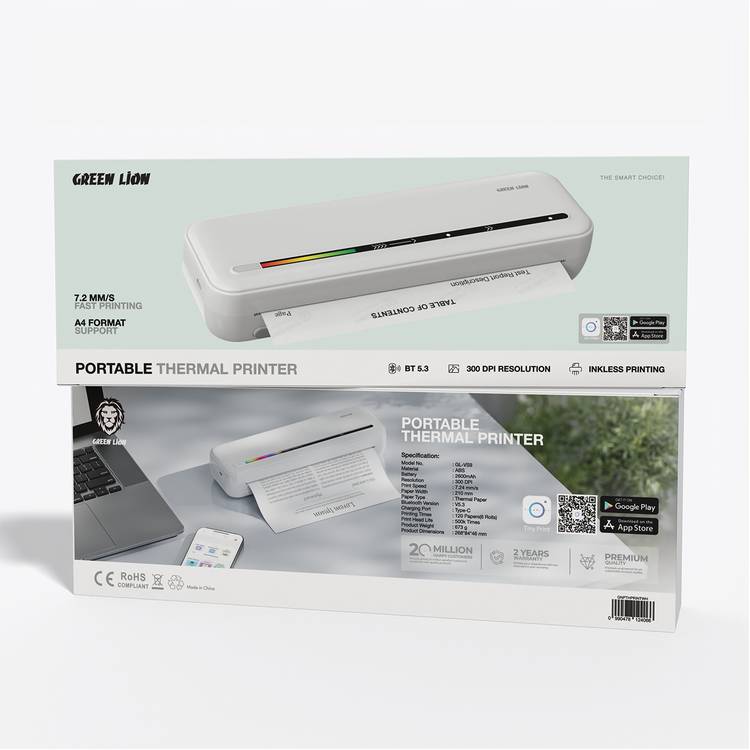 چاپگر حرارتی قابل حمل Green Lion یک چاپگر قابل حمل قابل توجه است. سریع و کارآمد است و سرعت چاپ آن 7.24 میلی متر بر ثانیه است. نتایج نهایی واضح و واضح هستند، زیرا وضوح چاپ 300 نقطه در اینچ چشمگیر است. می تواند تا 120 صفحه یا 6 رول کاغذ را چاپ کند. این دستگاه قابلیت چاپ بر روی حداکثر عرض 21 سانتی متر را دارد و تطبیق پذیری بالایی دارد. به لطف فناوری بلوتوث نسخه 5.3 از یک اتصال بدون وقفه لذت ببرید. این دستگاه با باتری 2600 میلی آمپر ساعتی خود دوام زیادی دارد و آن را برای دوره های طولانی چاپ عالی می کند. چاپگر حرارتی قابل حمل Green Lion برای کارهای مختلف چاپ عالی است. همچنین به دلیل طراحی کوچک و سبک آن، حمل آن آسان است.