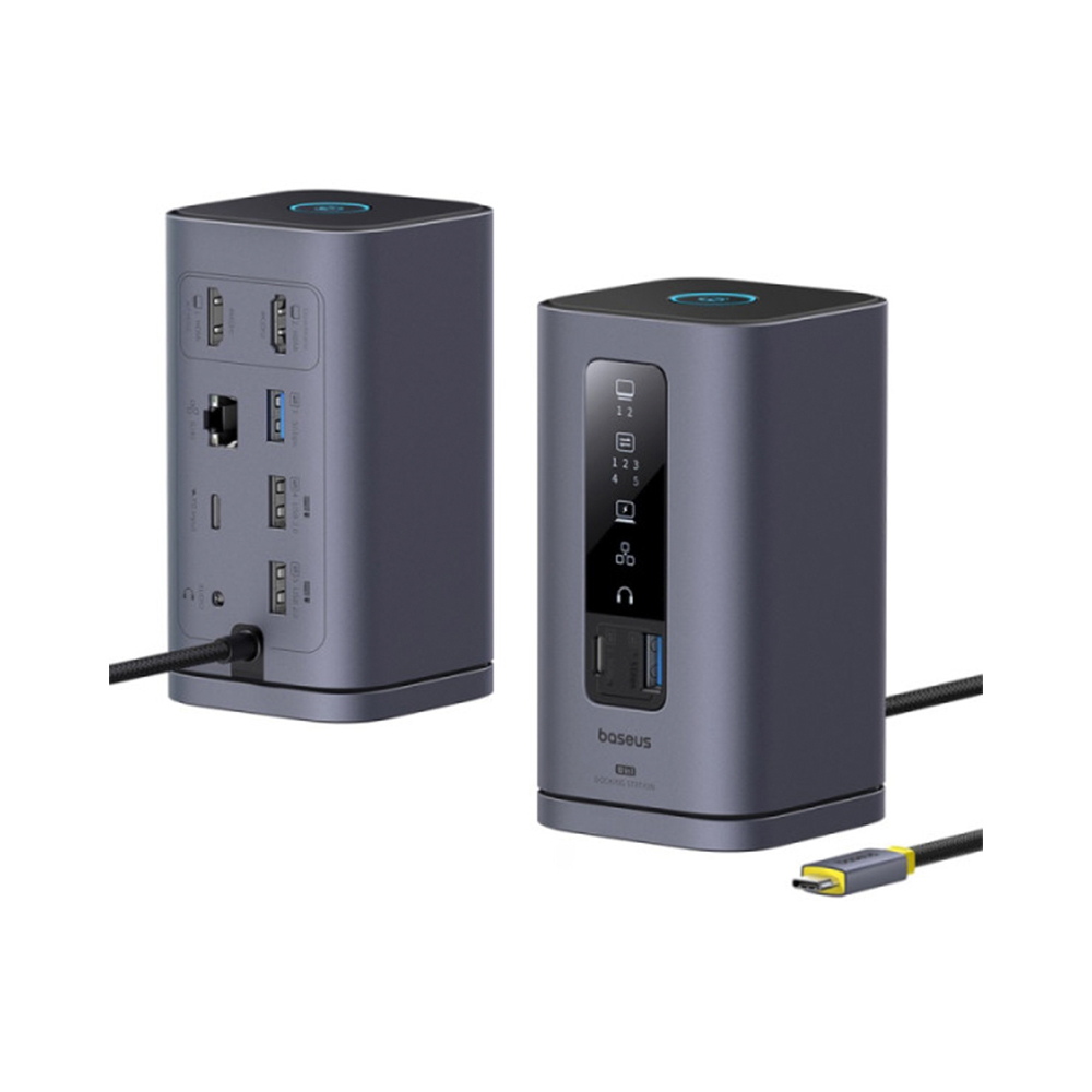 هاب داکاستیشن Baseus Spacemate با طراحی عمودی منحصربهفرد و ظاهر لوکس آلومینیومی، مناسب برای ایجاد یک میزکاری حرفهای و منظم است.