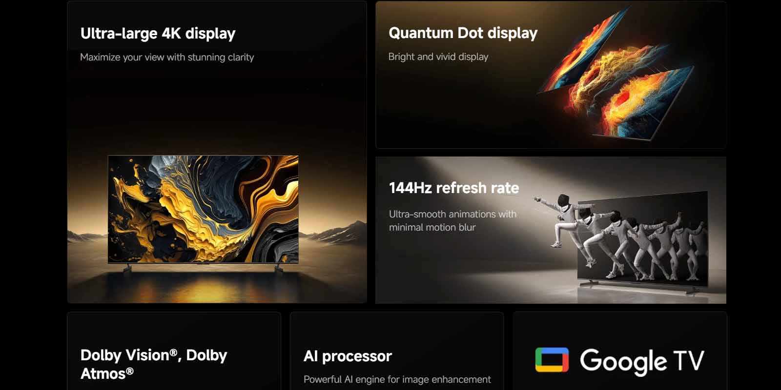 تلویزیون شیائومی TV Max 100 با نرخ تازهسازی 144 هرتز و فناوری MEMC 120Hz، تصاویر سریع را بدون هیچ تاری یا لرزش نمایش میدهد.