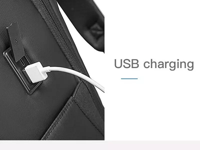 در طراحی کوله ضد سرقت بنج BG-7276 یک درگاه USB 3.0 خارجی در کنار آن وجود دارد که قابلیت شارژ سریع را داراست. به سادگی آن را به یک پاوربانک در کنار کیف وصل کنید و دستگاه تلفن همراه خود را شارژ کنید (توجه داشته باشید که پاوربانک جزو محصول نیست.) BANGE برای آسیب ندیدن این درگاه شارژ و حفظ آن از گرد و غبار برایش یک درپوش طراحی کرده است.