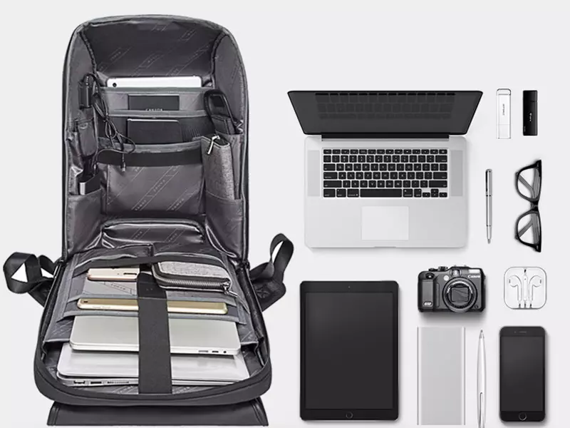 کوله ضد سرقت یو اس بی دار بنج مدل BG-7276 دارای ذخیره سازی چند محفظه است تا شما وسایل خود را به طور منظم در آن قرار دهید. این کوله پشتی ضد آب دارای یک محفظه بزرگ برای قرار دادن لپ تاپ 15.6 اینچ و یک محفظه جداگانه برای قرار دادن آیپد 12.9 اینچی است.