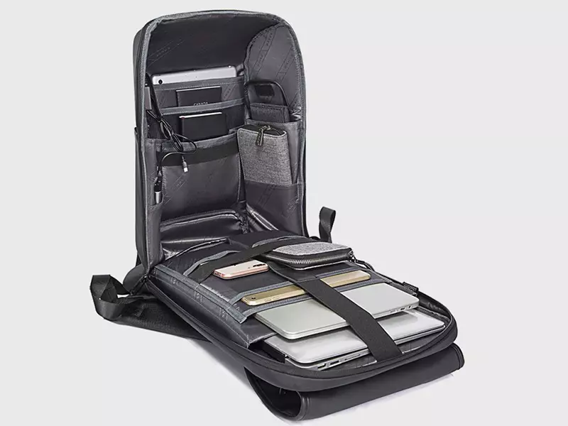 کوله ضد آب مسافرتی دارای قفل ضد سرقت بوده و از امنیت بالایی برخوردار است. همه وسایل مورد نیاز و با ارزش خود را برای حمل روزانه و حتی سفر در فضاهایی با طراحی جداگانه در کوله قرار داده و با اطمینان و آرامش خاطر از آنها استفاده نمایید. شارژر , کارت بانکی, لپ تاپ, نوت بوک, هدفون, دوربین عکاسی و کاغذ , هرگز در کیف شما آسیب نمی بیند. این کیف هوشمند طوری طراحی شده است که هر چیزی را که نیاز دارید در خود جای دهید و با خیال راحت به هر کجا که می خواهید بروید و به انجام کارهایتان مشغول شوید. قفل ضد سرقت با داشتن رمز عبور تضمین موثر ایمنی برای اموال شما در سفر نیز می باشد.