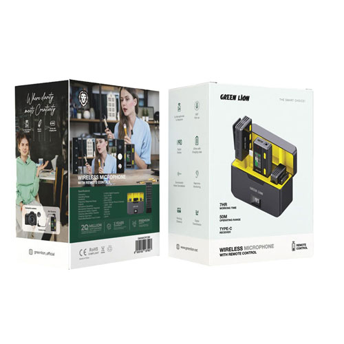 میکروفون اندرویدی گرین لاین از سه قطعه قابل حمل که درون یک کیس شارژ قرار میگیرند تشکیل شده است. دو تا از این قطعات قابل حمل فرستنده صدا بوده که روی یقه فرد قرار میگیرند و یکی از آنها نیز گیرنده است که به گوشی اندرویدی شما با پورت تایپ سی شما وصل میشود.