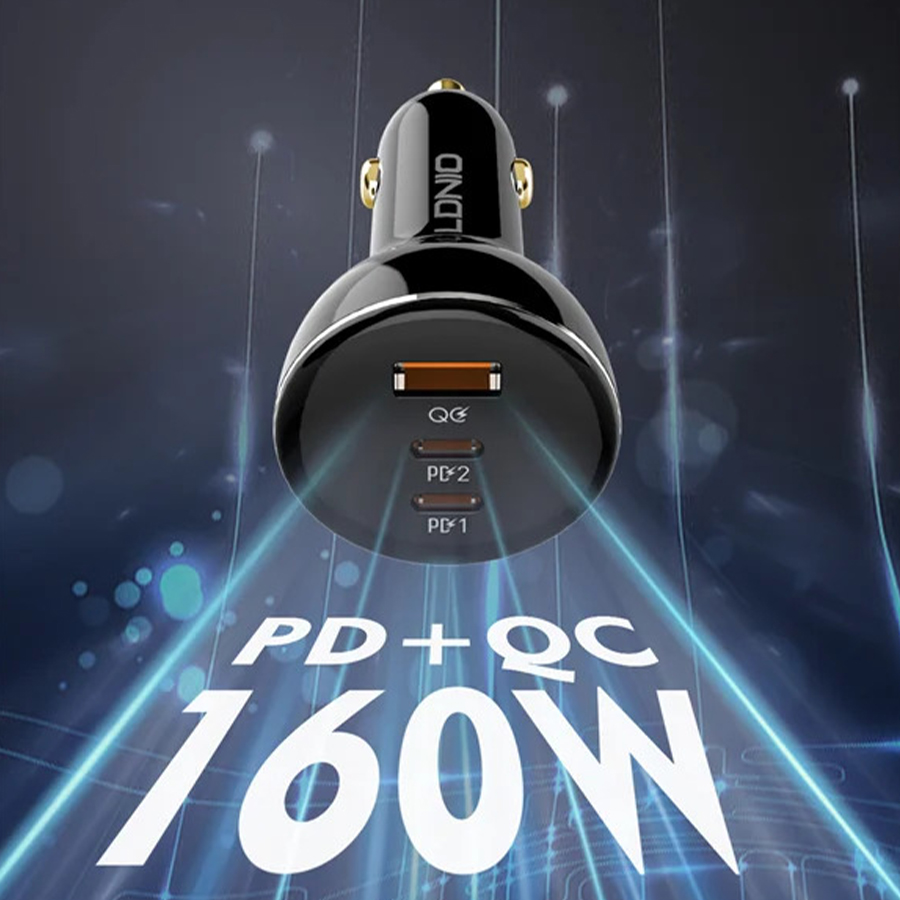 شارژر فندکی سوپر فست شارژ c102 ال دی نیو Ldnio C102 car charger C to C cable 160W
