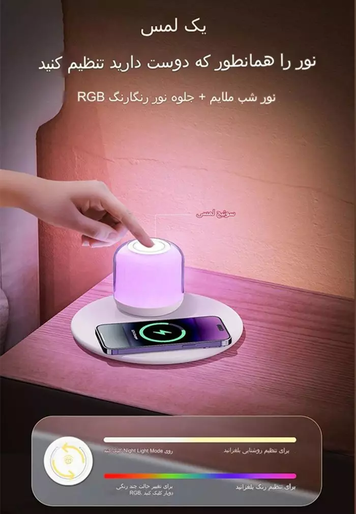 شارژر بیسیم و چراغ خواب رومیزی 15 وات رچی Recci Shadow 2-in-1 Wireless Charger RLS-L17
