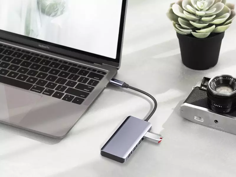 با این حال امکان جابهجایی دادهها تنها یکی از کاربردهای این هاب است، زیرا هم میتواند بهعنوان رابطی برای متصل کردن چند وسیلهی الکترونیکی و جانبی به یکدیگر بهکار رود، هم امکان شارژ سریع لوازم از طریق درگاههای آن وجود دارد.