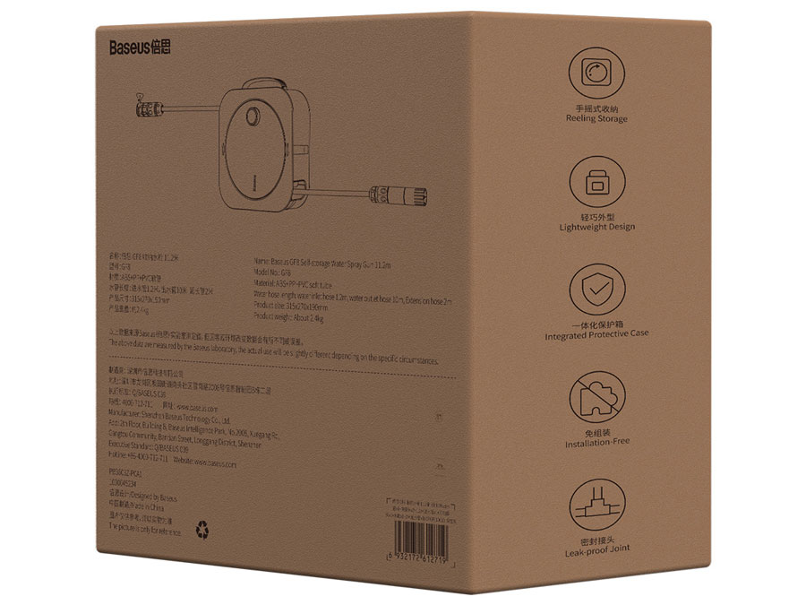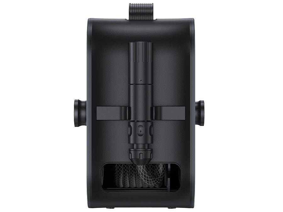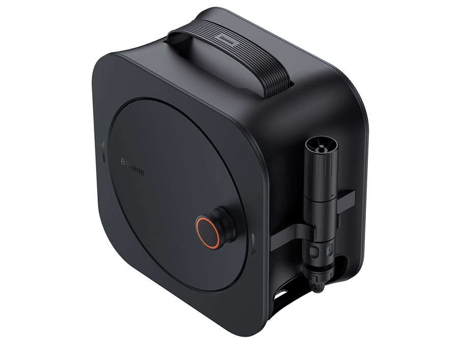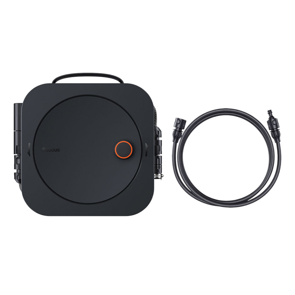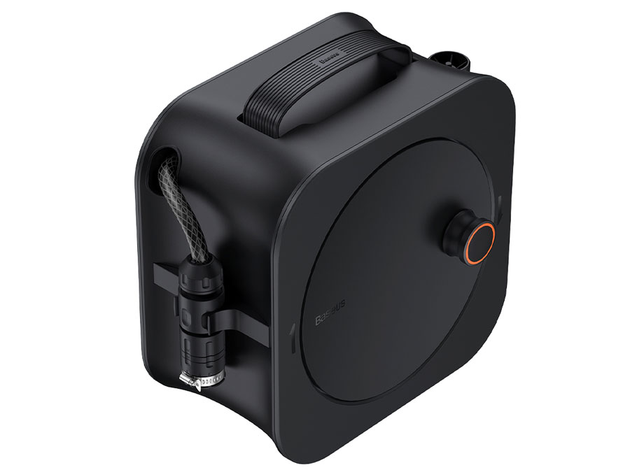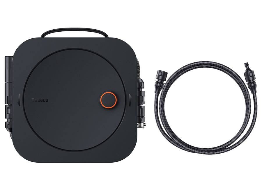 کارواش دستی ماشین بیسوس از دو نوع شلنگ ورودی و خروجی برخوردار بوده و طول آنها به ترتیب 1.2 متر و 15 متر است؛ کلید طراحی شده روی بدنه آن هم برای جمع کردن شلنگ ورودی و خروجی آب کاربرد دارد و با چرخاندن آن میتوانید به راحتی شلنگ را مانند یک قرقره جمع کنید و بعد از جمع شدن میتوانید آن را در جایگاهی که در دو طراف بدنه است قرار دهید.