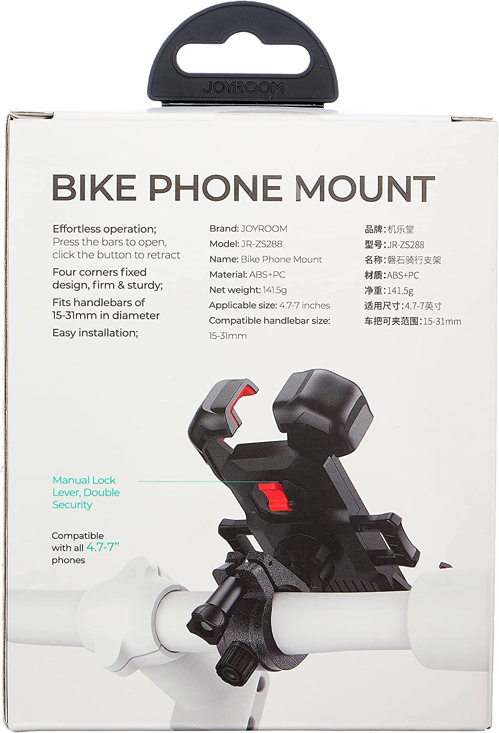 جنس هولدر دوچرخه جویروم JR-ZS288 از پلاستیک محکم و مقاوم ساخته شده که از لغزش و تکان خوردن جلوگیری می کند. چهار گوش این هولدر که با گوشی در تماس هستند دارای روکشی سلیکونی می باشند. این هولدر گوشی شما را به خوبی داخل خود جای داده و شما می توانید بدون هیچگونه مزاحمت از آن استفاده کرده و نگران افتادن گوشی خود نباشید.