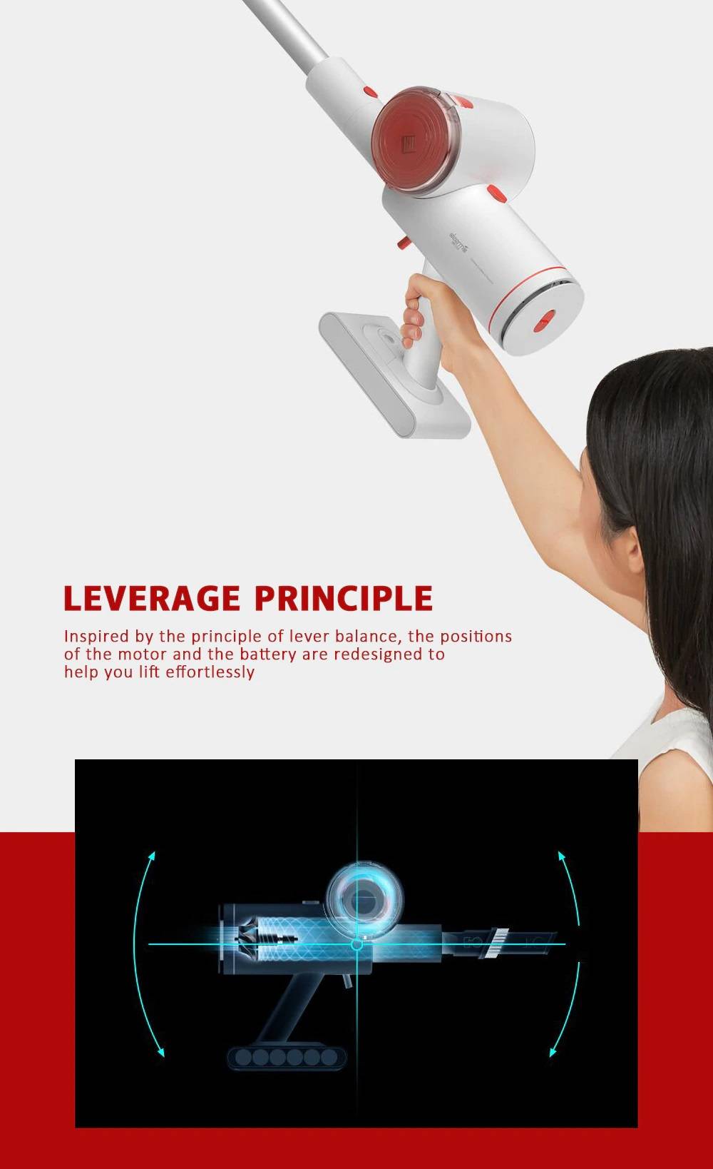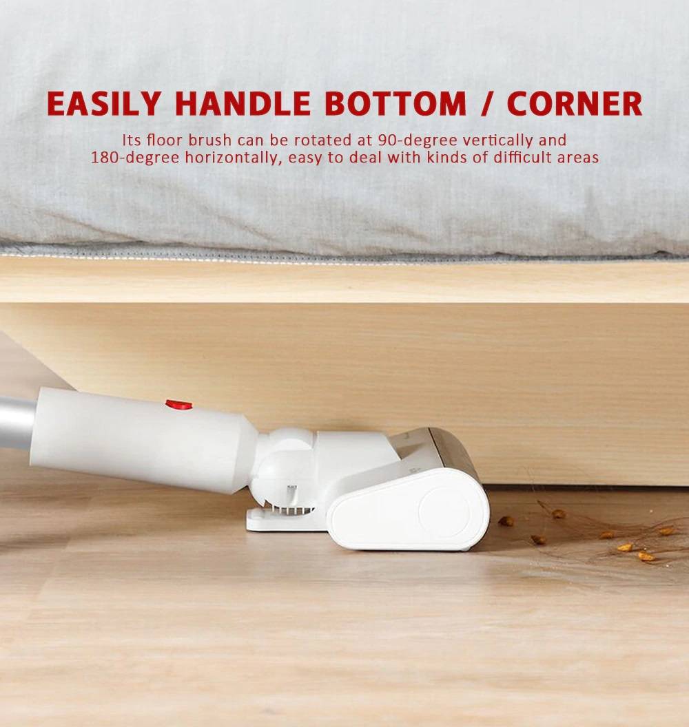 دسته بین موتور و باتری با زاویه 60 درجه طراحی شده اند که هنگام استفاده در تمام نقاط منزل، به سادگی بتوانید پاکیزگی را به ارمغان بیاورید. با اینکار، فشار زیادی به دست هنگام کارکردن وارد نمی شود.