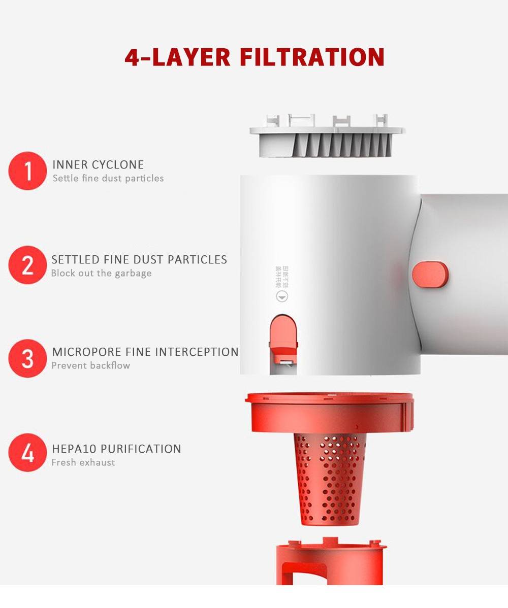 با کمک چهار فیلتر HEPA گردوغبار را از هوای خروجی جدا کرده و از پخش گردوغبار در محیط خانه جلوگیری میکند.