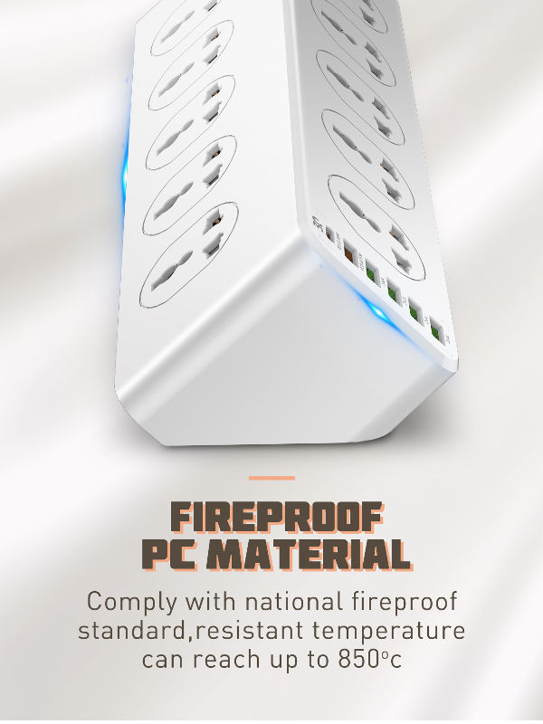 این چند راهی شامل 10 پریز برق ، 5 پورت USB و یک پورت Type C است که میتوانید از آنها استفاده کنید. توان کلی این چند راهی 2500 وات بوده که به همین واسطه میتوانید کاربریهای مختلفی را از آن بگیرید. گفتنی است که جنس بدنه، مقاومت بالایی نیز در برابر دما داشته و این مقاومت تا دمای 850 درجه سلسیوس وجود دارد. طراحی مثلثی شکل چندراهی نیز استفاده از آن را بسیار راحتتر میکند. در قسمت زیرین LDNIO SC10610 پدهای سیلیکونی قرار داده شدهاند که مانع از لیز خوردن چندراهی میشود. برای اینکه محدودیت استفاده کمتری داشته باشید و بتوانید انواع دوشاخهها و سه شاخهها را به این چندراهی متصل کنید، سوراخهای پریز تعبیه شده در هر سمت، با سمت دیگر (دو ردیف 5تایی) متفاوت است و جهتی بر عکس هم دارند.