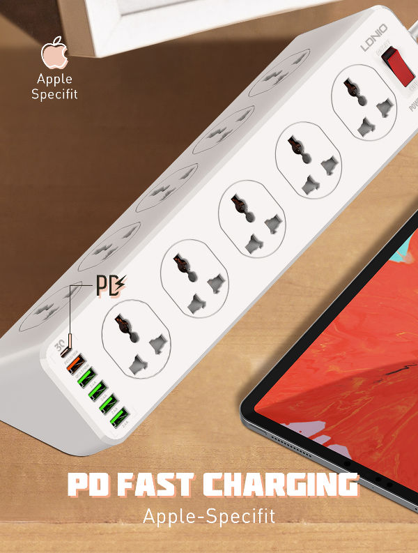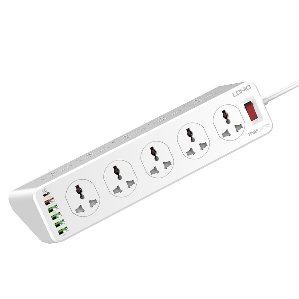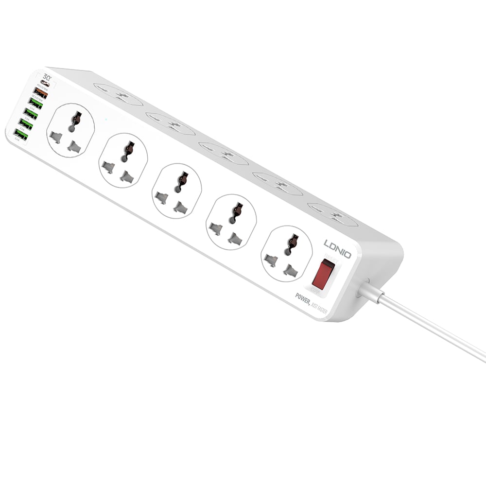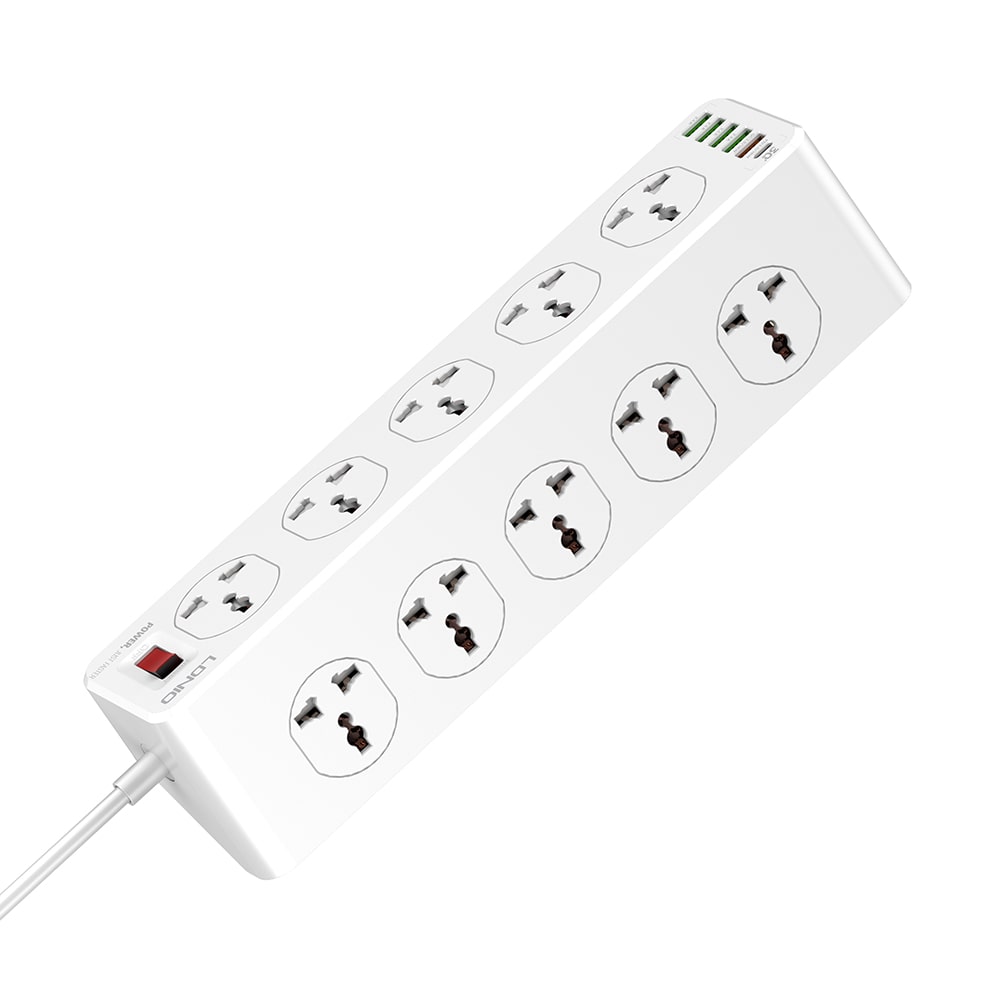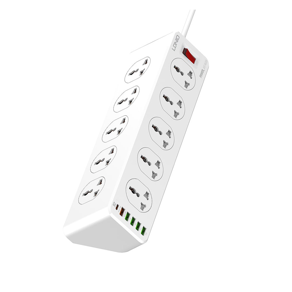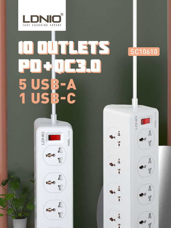 اگر میخواهید همزمان چند دستگاه الکتریکی را به برق متصل کنید و در کنار آن گجتهای الکتریکی خود را شارژ کنید، نیازی به خرید چندین شارژر مجزا نیست زیرا چند راهی LDNIO SC10610 این عمل را به سادگی برایتان امکان پذیر میکند. این محصول با داشتن 5 پورت USB ، یک پورت تایپ سی و 10 خروجی برق درمجموع میتواند همزمان 16 دستگاه را تحمل کند (اما حتما این نکته را نیز در نظر بگیرید، که جریان خروجی کلی بین آنها تقسیم خواهد شد.)