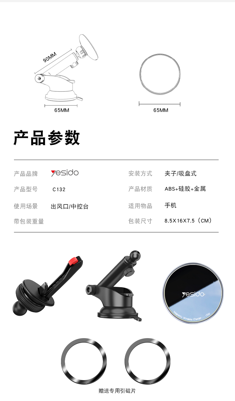 هولدر و نگه دارنده همراه با قابلیت شارژ وایرلس یسیدو مدل Yesido C132