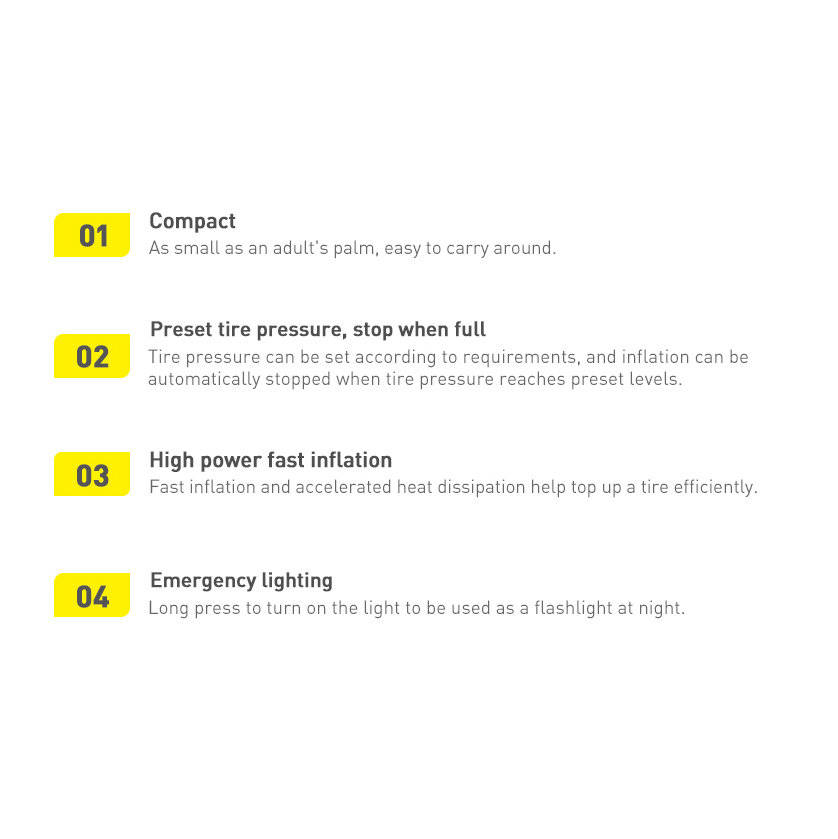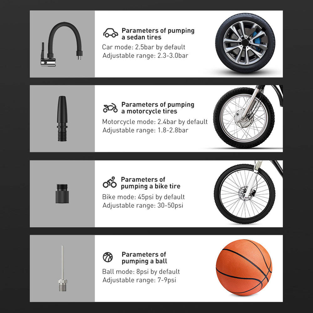 مزیت دیگر این پمپ باد، تنظیم خودکار باد است. شما تنها فشار لازم برای لاستیک را به آن می دهید و به طور خودکار به محض رسیدن به حد مشخص شده، از کار خواهد ایستاد. تنظیم فشار باد دو حالت خودکار و دستی دارد که شما می توانید با توجه به نیاز خود باد لاستیک را کم یا زیاد کنید.
