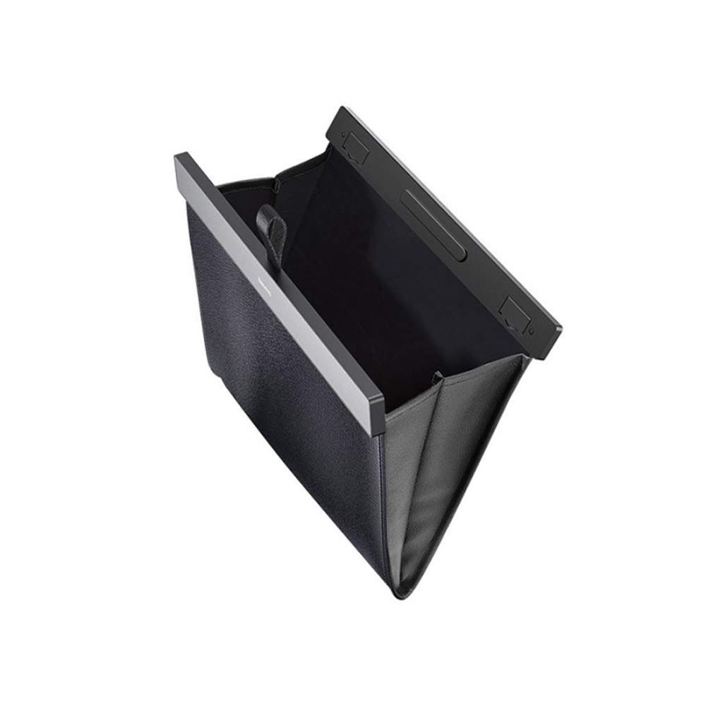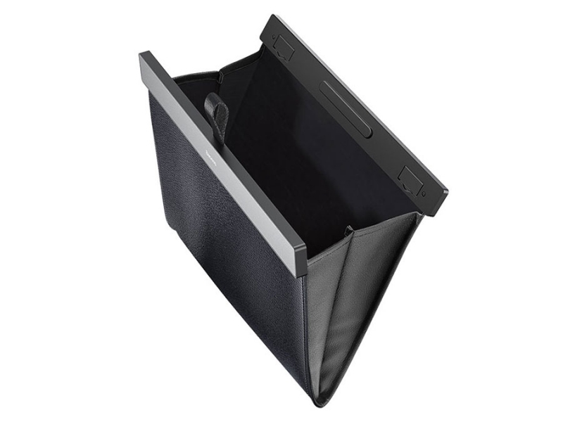 سطل زباله باسئوس Baseus CRLJD-A01 Leakproof Car Garbage Bag دارای دو بخش اصلی است؛ کیسه مخزن که از جنس چرم PU بوده و درب که از آلیاژ آلومینیوم ساخته شده است. در قسمت ورودی آن یک دستگیره کوچک چرمی نصب شده که کمک میکند بدون دست زدن به سطل زباله در آن را باز کنیم یا ببندیم. ورودی این کیسه زباله مغناطیسی بوده و با یک فشار کوچک خودش بسته میشود. این طراحی از خارج شدن ناگهای زبالهها و گرد و خاک جلوگیری میکند.