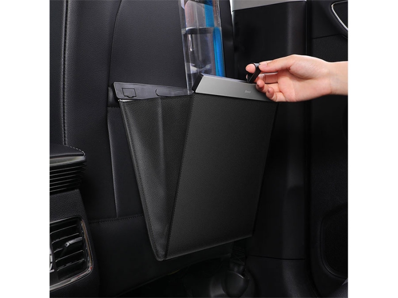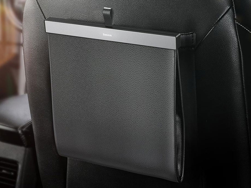 قطر چرم به کار رفته در کیسه زباله باسئوس CRLJD-A01 حدودا 7 میلیمتر است، در نتیجه فضای زیادی نمیگیرد و به راحتی میتواند در پشت صندلیهای جلویی ماشین نصب شود. تنها کافیست قلابهایی که در پشت آن قرار دارند را به جیب صندلی گیر بدهید تا کیپ شوند.