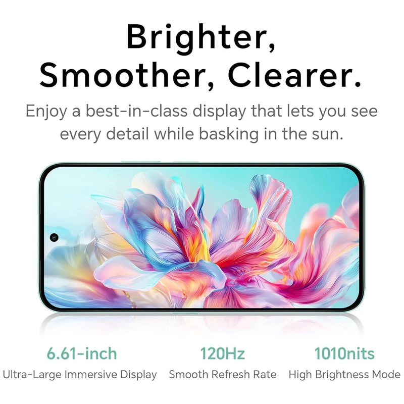 در بخش نمایشگر، Honor X6c از یک پنل 6.61 اینچی از نوع TFT LCD استفاده میکند که نرخ نوسازی ۱۲۰ هرتزی دارد. این نرخ نوسازی بالا باعث روانتر شدن پیمایش در منوها، صفحات وب و اجرای بازیها میشود. حداکثر روشنایی 1010 نیت نیز باعث میشود که بتوان بهراحتی در فضای باز از گوشی استفاده کرد. با این حال، وضوح تصویر 720 در 1604 پیکسل باعث میشود تراکم پیکسلی حدود 266 باشد که برای نمایش جزئیات ریز یا مطالعه طولانی مدت ایدهآل نیست. بهطور کلی، نمایشگر این گوشی برای کاربری عمومی مناسب است اما اگر به تماشای فیلم یا مطالعه زیاد علاقهمند هستید، ممکن است محدودیتهایی را احساس کنید.