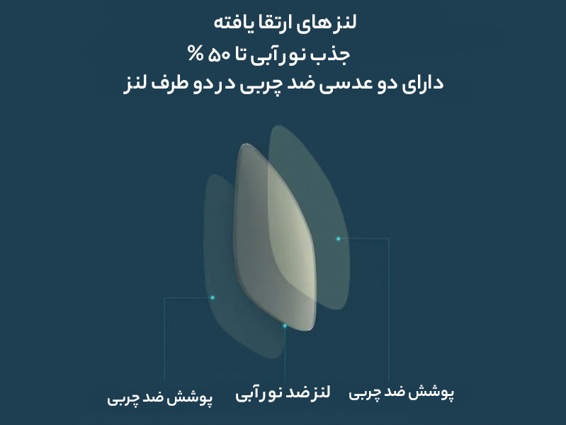 عدسی های استفاده شده در عینک طبی برای کامپیوتر شیائومی XIAOMI Mi Computer Glasses Pro دارای 3 لایه اصلی می باشد تا اغلب از ورود نور آبی منتشر شده از دستگاه های الکترونیکی به چشم جلوگیری کند علاوه بر این، از باعث کاهش فشار وارد بر چشم، رفع سردرد های مزمن و مشکلات بی خوابی می شود. این عدسی ها دارای پوشش ضد چربی می باشد.