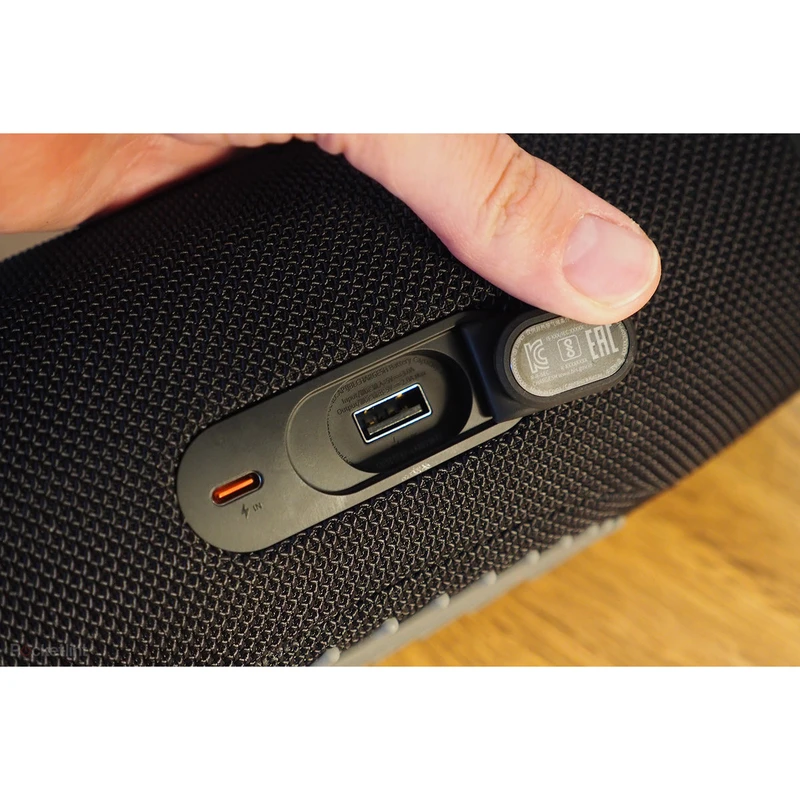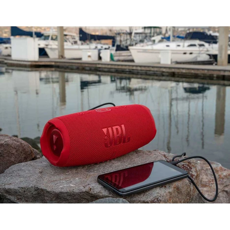 اسپیکر بلوتوثی قابل حمل جی بی ال مدل Charge 5، مدت زمان پخش تا 20 ساعت، نسخه بلوتوث 5.1، منبع انرژی باتری، مدت زمان شارژ شدن 4 ساعت، همراه با کابل شارژ، درگاه ارتباطی USB و ورودی میکروفون، قابلیت پاوربانک، ضد آب و گرد و خاک