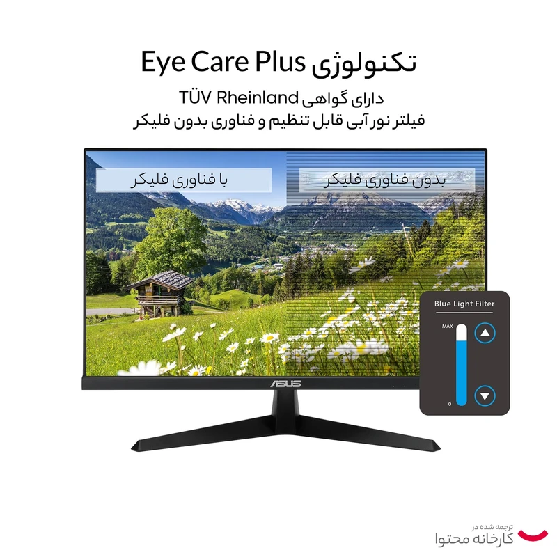 ASUS VY۲۲۹HE Eye Care Monitor – ۲۲ inch (۲۱.۴۵ inch viewable) FHD (۱۹۲۰ x ۱۰۸۰), IPS, ۷۵Hz, IPS, ۱ms (MPRT), Adaptive-Sync, Eye Care Plus technology, Color Augmentation, Rest Reminder, Blue Light Filter, Flicker Free, antibacterial treatment