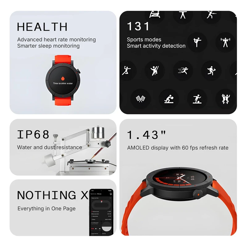 ورزشی : الگوریتم حرکتی هوشمند (Smart Movement Algorithm) / اندازهگیری ضربان قلب / ۱۳۱ حالت ورزشی با ۷ فعالیت شناسایی هوشمند / سلامتی: اندازهگیری خودکار ضربان قلب / پایش ۲۴ ساعته ضربان قلب / ثبت ضربان قلب در حالت استراحت / ثبت ضربان قلب هنگام ورزش / هشدار ضربان قلب / میانگین ضربان قلب / امتیاز فعالیت / تشخیص خواب (پشتیبانی از پایش پیشرفته خواب) / اندازهگیری سطح اکسیژن خون (SpO₂) / ثبت وضعیت فیزیولوژیکی بانوان / یادآور اندازهگیری اکسیژن خون / پایش استرس / شمارش گامهای روزانه / محاسبه کالری مصرفی / اندازهگیری مسافت پیموده شده / ثبت مدت زمان فعالیت / یادآور نوشیدن آب / یادآور تحرک (Stand Up Reminder) / سایر قابلیتها: تبدیل گفتار به متن (Recording Transcription) / نمایش اخبار مهم / مکالمه بلوتوثی / واچفیسهای متنوع / واچفیس با تصویر آلبوم شخصی / واچفیس ویدیویی / استودیوی طراحی واچفیس / قابلیت تعویض واچفیس / تمرین تنفس / اعلان پیامها / کنترل موسیقی / تایمر / کرنومتر / زنگ هشدار / هشدار پیام با ایموجی / نمایش وضعیت آبوهوا / پیدا کردن گوشی / چراغقوه / کنترل از راه دور دوربین / یادآور / دستیار صوتی / تقویم / ماشینحساب / ساعت جهانی
