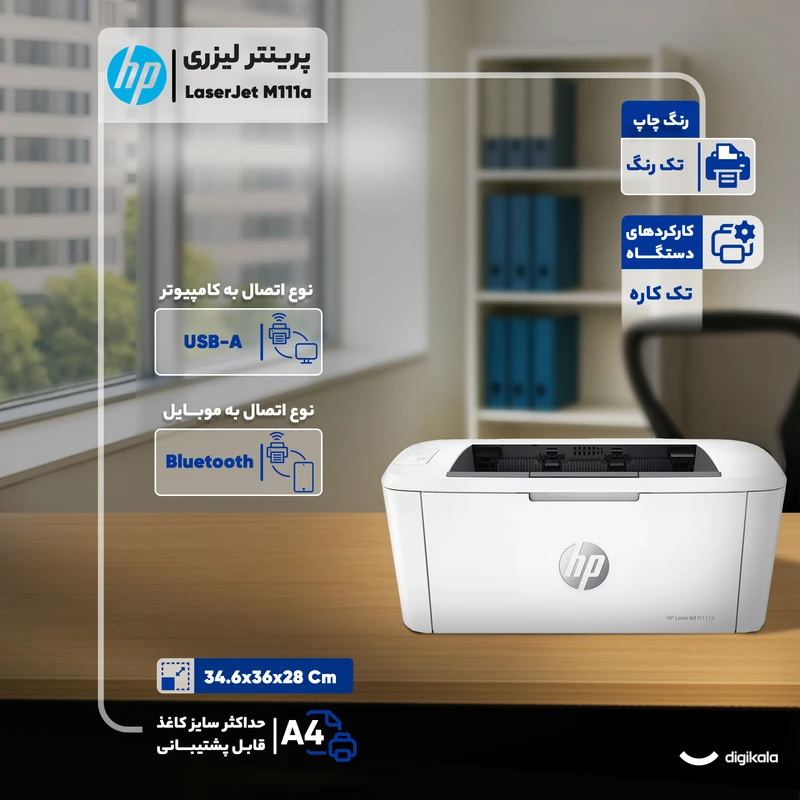 پرینتر HP LaserJet M111a یکی از جدیدترین مدلهای تککاره لیزری شرکت اچپی است که برای کاربری خانگی، دفاتر کوچک و محیطهایی با حجم چاپ متوسط طراحی شده است. این مدل با سرعت مناسب، کیفیت ثابت و ابعاد جمعوجور، چاپ تکرنگ سیاهوسفید را با راندمان بالا و هزینه نگهداری پایین ارائه میدهد. اتصال ساده از طریق پورت USB-A و سازگاری کامل با سیستمعاملهای Windows و macOS، آن را به انتخابی امن و پایدار برای چاپ متون و اسناد رسمی تبدیل کرده است. با مدیریت کاغذ دقیق، توان کار ماهانه تا ۸۰۰۰ برگ و پشتیبانی از استانداردهای رایج کاغذ، این پرینتر در دسته دستگاههایی قرار میگیرد که قابلیت اطمینان را با سادگی استفاده ترکیب میکنند.