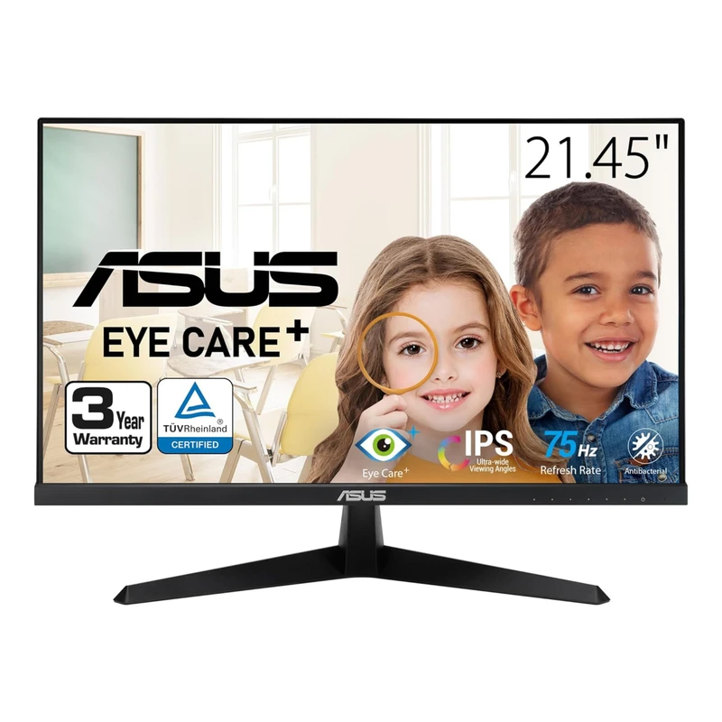 ASUS VY۲۲۹HE Eye Care Monitor – ۲۲ inch (۲۱.۴۵ inch viewable) FHD (۱۹۲۰ x ۱۰۸۰), IPS, ۷۵Hz, IPS, ۱ms (MPRT), Adaptive-Sync, Eye Care Plus technology, Color Augmentation, Rest Reminder, Blue Light Filter, Flicker Free, antibacterial treatment