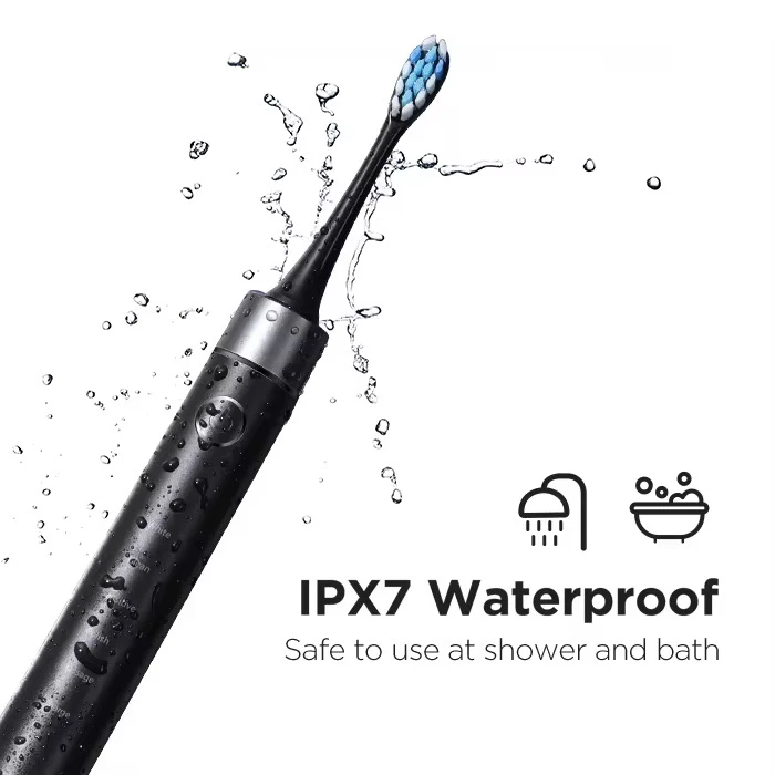 این مسواک دارای استاندارد ضدآب IPX7 است و میتوانید با خیال راحت آن را در حمام یا حتی زیر آب جاری بشویید. 🚿