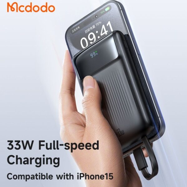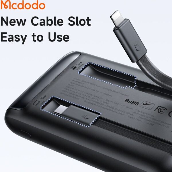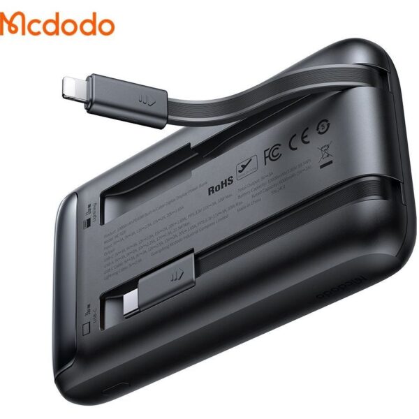 پاوربانک مک دودو مدل MC-023 همچنین مجهز به چندین درگاه خروجی است که به شما این امکان را میدهد که همزمان چندین دستگاه را شارژ کنید. این ویژگی در مواقعی که نیاز به شارژ همزمان گوشی و دیگر دستگاهها دارید، بسیار مفید خواهد بود.