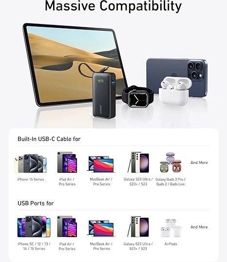 یکی از مهمترین ویژگیهای این پاوربانک، قابلیت شارژ سریع 30 واتی است. این ویژگی به شما این امکان را میدهد که دستگاههای خود را در کمترین زمان ممکن شارژ کنید. چه گوشی شما آیفون باشد، چه گوشی اندرویدی یا حتی لپتاپها، پاوربانک انکر قادر است هر کدام از این دستگاهها را با سرعت بالا شارژ کند. این ویژگی برای افرادی که همیشه در حال حرکت هستند و به شارژ سریع نیاز دارند، بسیار کارآمد است.