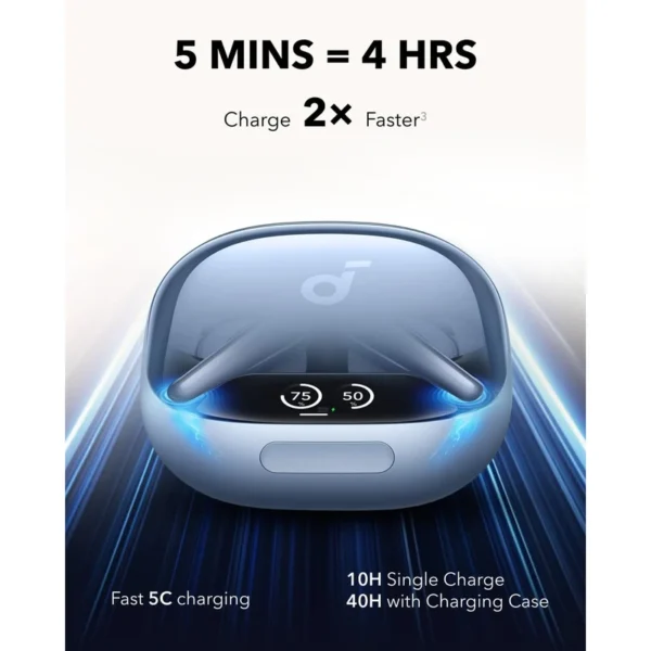 باتری با ظرفیت بالا و شارژ سریع: یکی از ویژگیهای برجسته Anker Soundcore Liberty 4 Pro، ظرفیت بالای باتری است که میتواند تا 7.5 ساعت در حالت روشن بودن حذف نویز فعال و تا 10 ساعت بدون فعال بودن حذف نویز، به شما شارژدهی بدهد. اگر نیاز به شارژ سریع دارید، میتوانید تنها با 5 دقیقه شارژ، 240 دقیقه استفاده کنید. این ویژگی برای افرادی که در حرکت هستند و وقت کمی دارند بسیار مفید است.