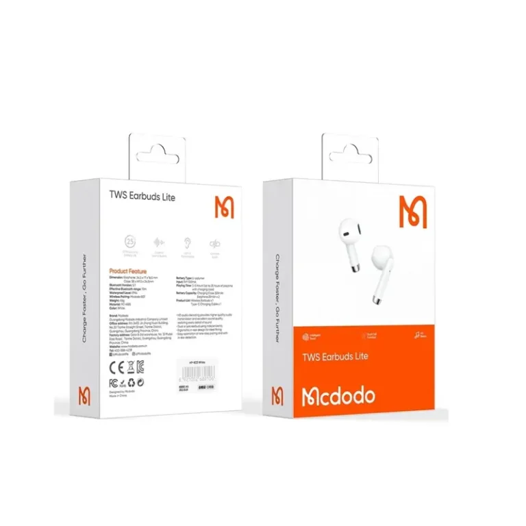 ایرپاد مک دودو مدل MCDODO HP-803 با وزن سبک 46 گرم و ابعاد کوچک کیس شارژ، یک انتخاب عالی برای استفاده در حین ورزش و در زندگی روزمره است. این محصول دارای کیس شارژ همراه است که امکان شارژ آسان ایرپادها را فراهم میکند. با اینکه کیس شارژ دارای ظرفیت باتری 320 میلیآمپر ساعت است، اما با استفاده از رابط تایپ سی، میتوانید به راحتی آن را شارژ کنید. همچنین، با ویژگیهای پنل لمسی و مقاومت در برابر نفوذ آب با استاندارد IPX4، این ایرپاد مناسب برای استفاده در شرایط مختلف محیطی میباشد. با همراهی کابل تایپ سی، استفاده از این ایرپاد همیشه راحت و آسان خواهد بود.