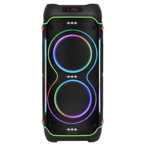 PartyBox-900 با ابعاد 860×350×380 میلیمتر و وزن خالص حدود 17 کیلوگرم، ترکیبی از طراحی حرفهای و ساختار مقاوم است. ظاهر آن با در نظر گرفتن کاربری مهمانی و فضای باز طراحی شده تا هم حمل آسانی داشته باشد و هم در برابر استفادههای طولانیمدت مقاوم بماند. بستهبندی مناسب با جعبهای به ابعاد 918×400×430 میلیمتر نیز نشاندهندهی توجه به جزئیات در تولید این محصول است.