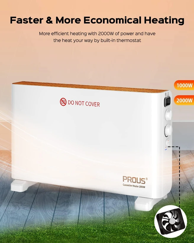 - صرفهجویی در انرژی : با سیمپیچ گرمایشی با کیفیت بالا و فن توربویی داخلی که بهرهوری گرمایش را افزایش میدهد. تنظیمات توان 1000 و 2000 وات بسته به نیاز محیط شما قابل انتخاب است. همچنین با ترموستات دستی که بهصورت خودکار دستگاه را روشن و خاموش میکند، مصرف انرژی کاهش مییابد.