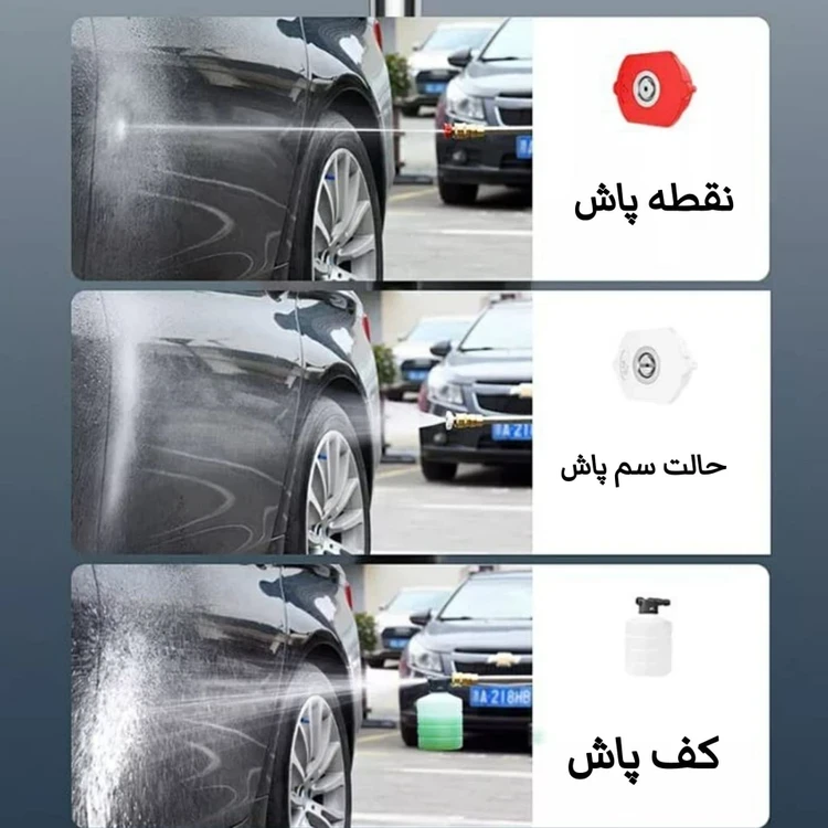 کاربرد چندمنظوره : مناسب برای شستن خودرو، موتورسیکلت، حیاط، نمای ساختمان، پنجره، و استفاده به عنوان سمپاش