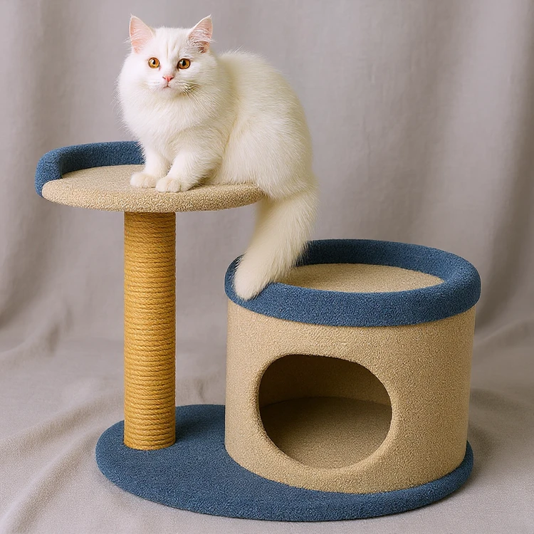با این اسکرچر دو طبقه، گربه شما هم بازی میکند و هم استراحت میکند! 😺طبقه پایین: فضای استوانهای با ورودی دایرهای، مکانی امن و راحت برای خواب و مخفی شدن گربه.طبقه بالا: سکوی نرم برای نشستن، بازی و نظارت بر محیط.ستون کنفی: برای ناخن کشیدن گربه، حفظ سلامت ناخنها و محافظت از مبلمان شما.پوشش نرم و مخملی: راحتی کامل و حس آرامش برای گربه شما.طراحی جمع و جور و شیک: مناسب برای گربههای کوچک تا متوسط و هماهنگ با دکوراسیون منزل.