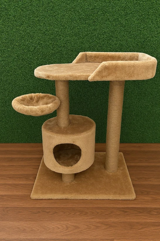 این محصول همه نیازهای گربه شما رو یکجا برطرف میکنه: از استراحت در خانهی دنج گرفته تا بازی و پرش روی سکوها. با وجود ستونهای کنفی محکم، دیگه خبری از خراشیدن مبل و وسایل خونه نیست.