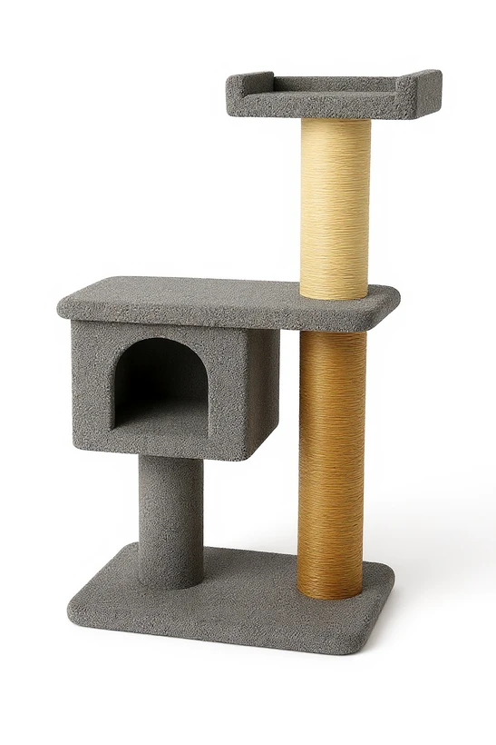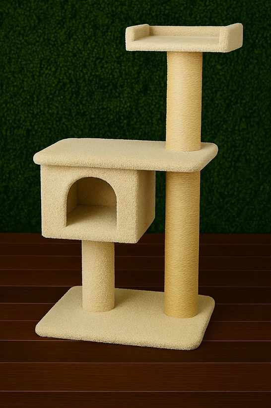 خانه و اسکرچر سهطبقه گربه، انتخابی ایدهآل برای گربههای خانگی است که هم به استراحت راحت نیاز دارند و هم عاشق بازی و فعالیت هستند. این محصول با ستون کنفی محکم برای چنگ زدن، باکس نرم تدی برای خواب آرام، و سکوهای چندطبقه برای پرش و استراحت طراحی شده است.